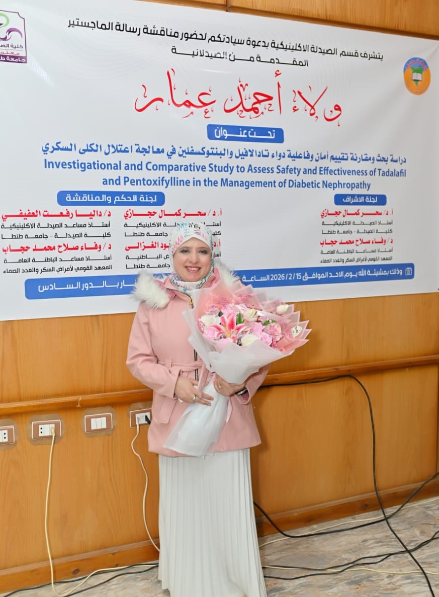 Tenue de la soutenance publique de la thèse du magistrat de la pharmacienne/ Asmaa El-Shafei Abdel-Tawab El-Sharaby, au sein du département de pharmacie clinique de la faculté de pharmacie de l'université de Tanta, le lundi 9 février 2026.
