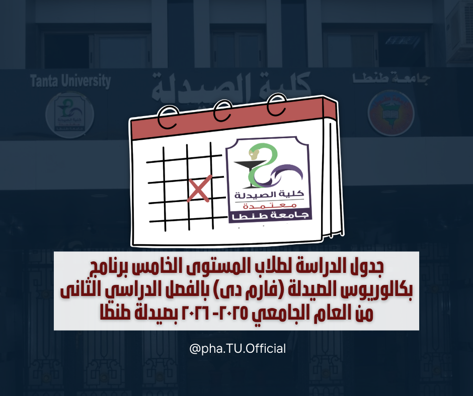 جدول الدراسة لطلاب المستوى الخامس برنامج بكالوريوس الصيدلة (فارم دى) بالفصل الدراسي الثانى من العام الجامعي ٢٠٢٥- ٢٠٢٦ بصيدلة طنطا