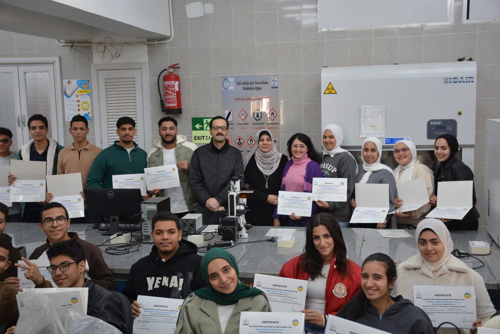 تكريم عدد من طلاب برنامج الصيدلة الإكلينيكية لاجتيازهم التدريب العملي بمعمل الأبحاث المركزي بصيدلة طنطا
